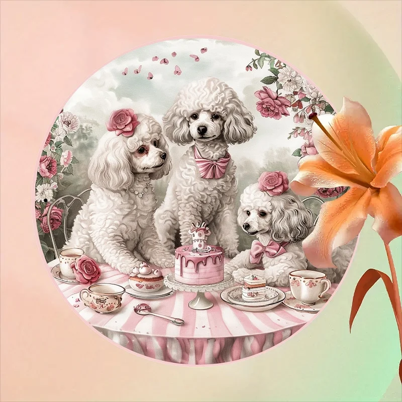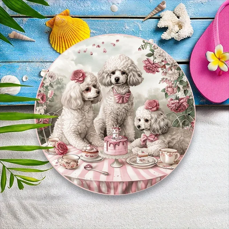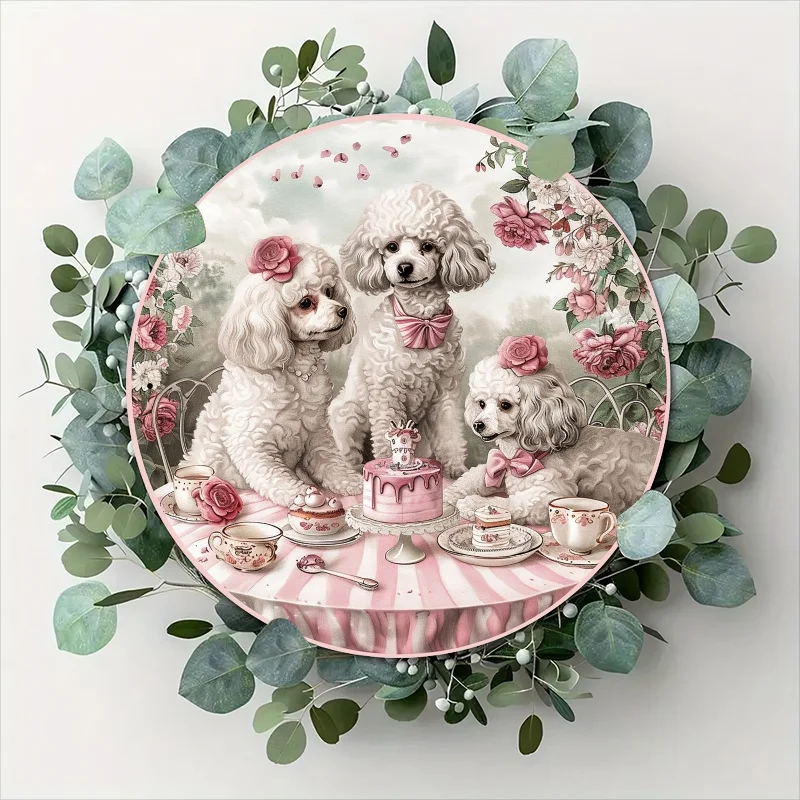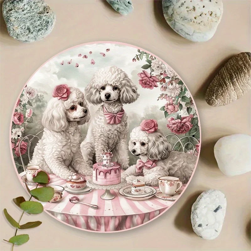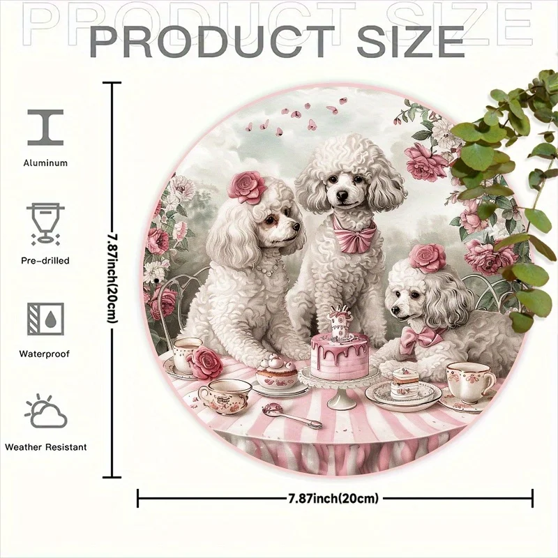 Cute Poodle Round Aluminum Metal Sign For Wall Decor
