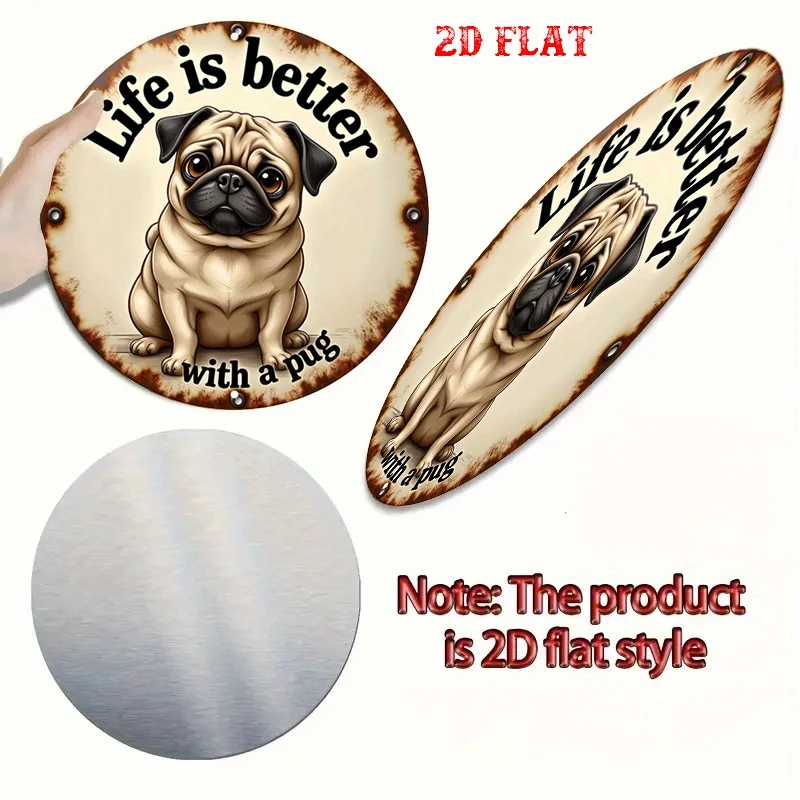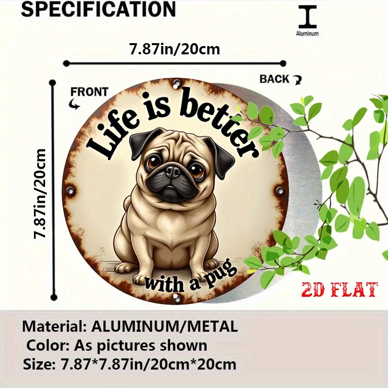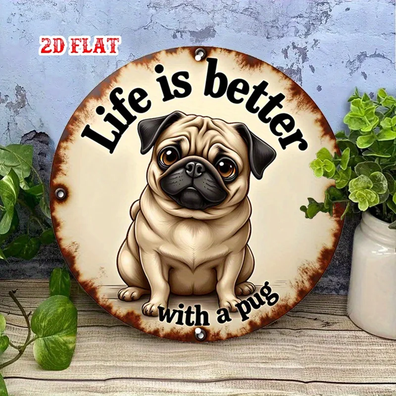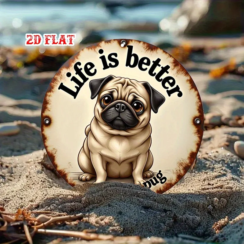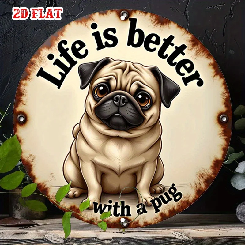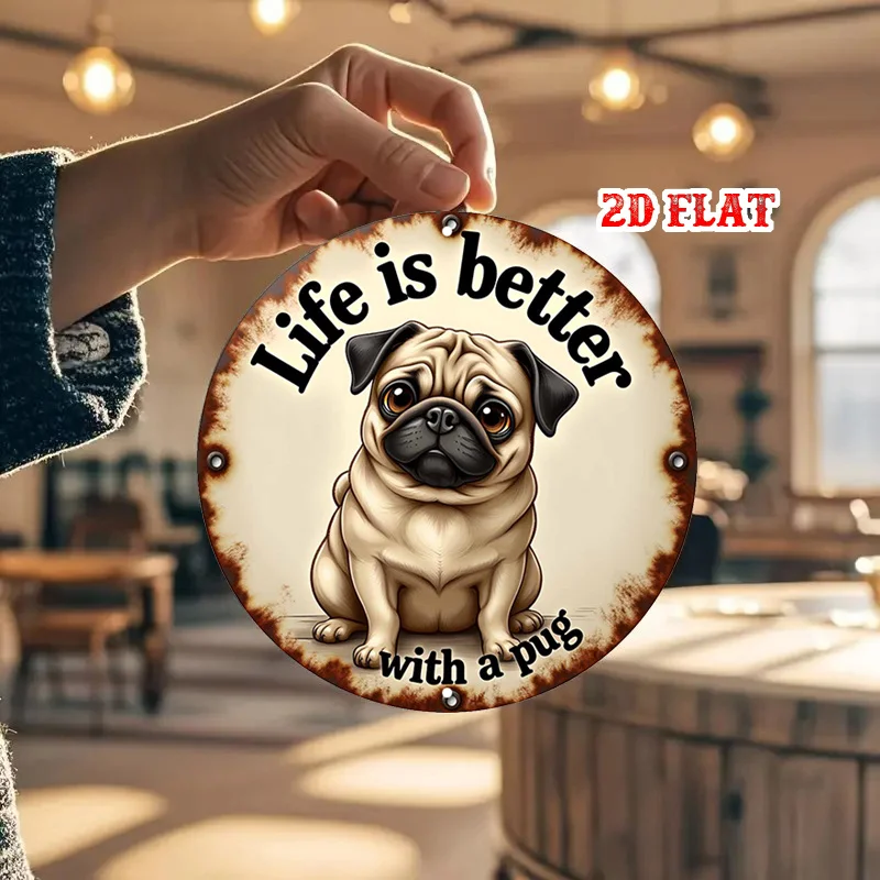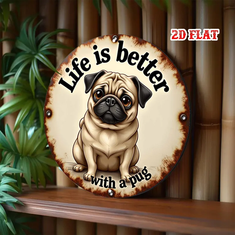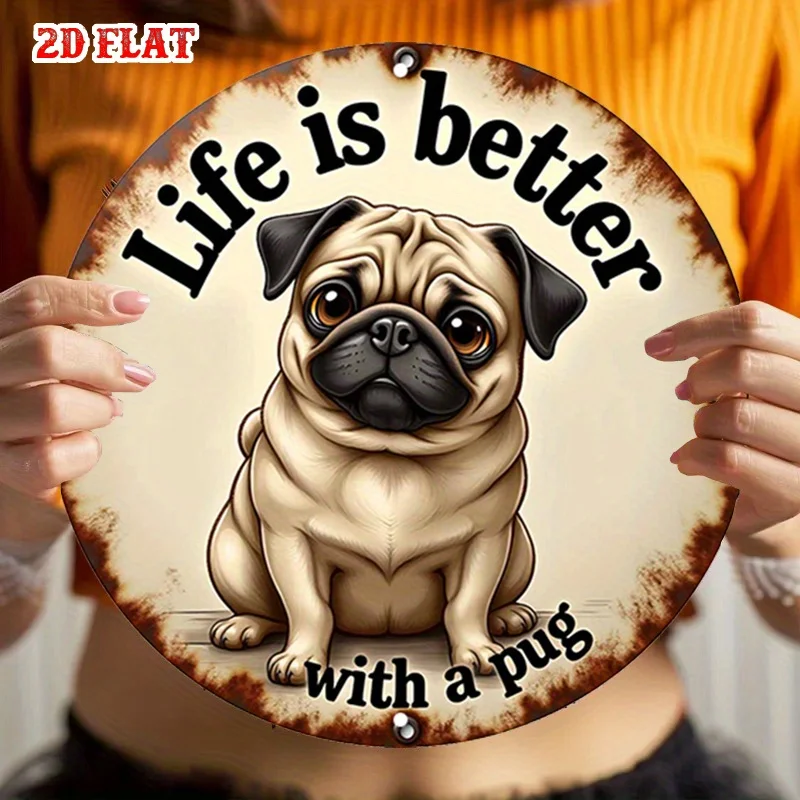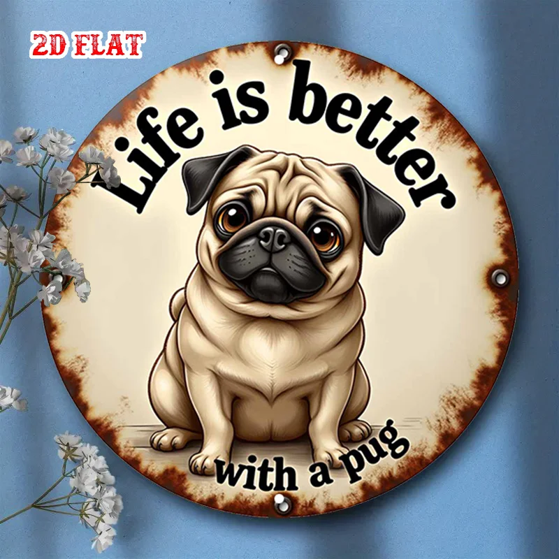 1pc Pug Round Aluminum Sign