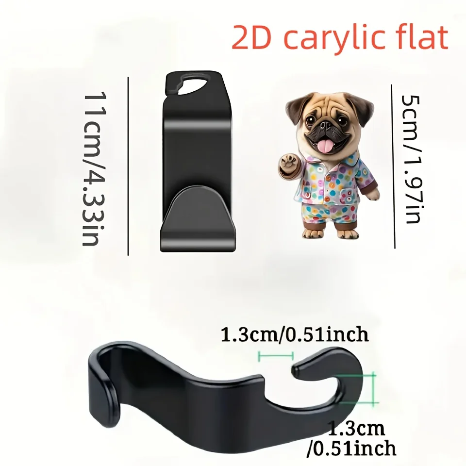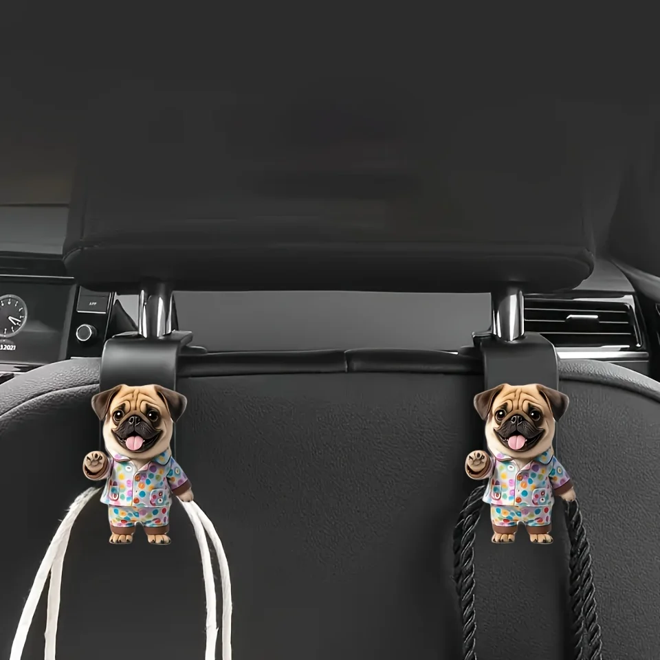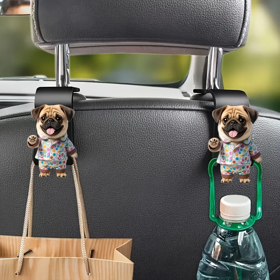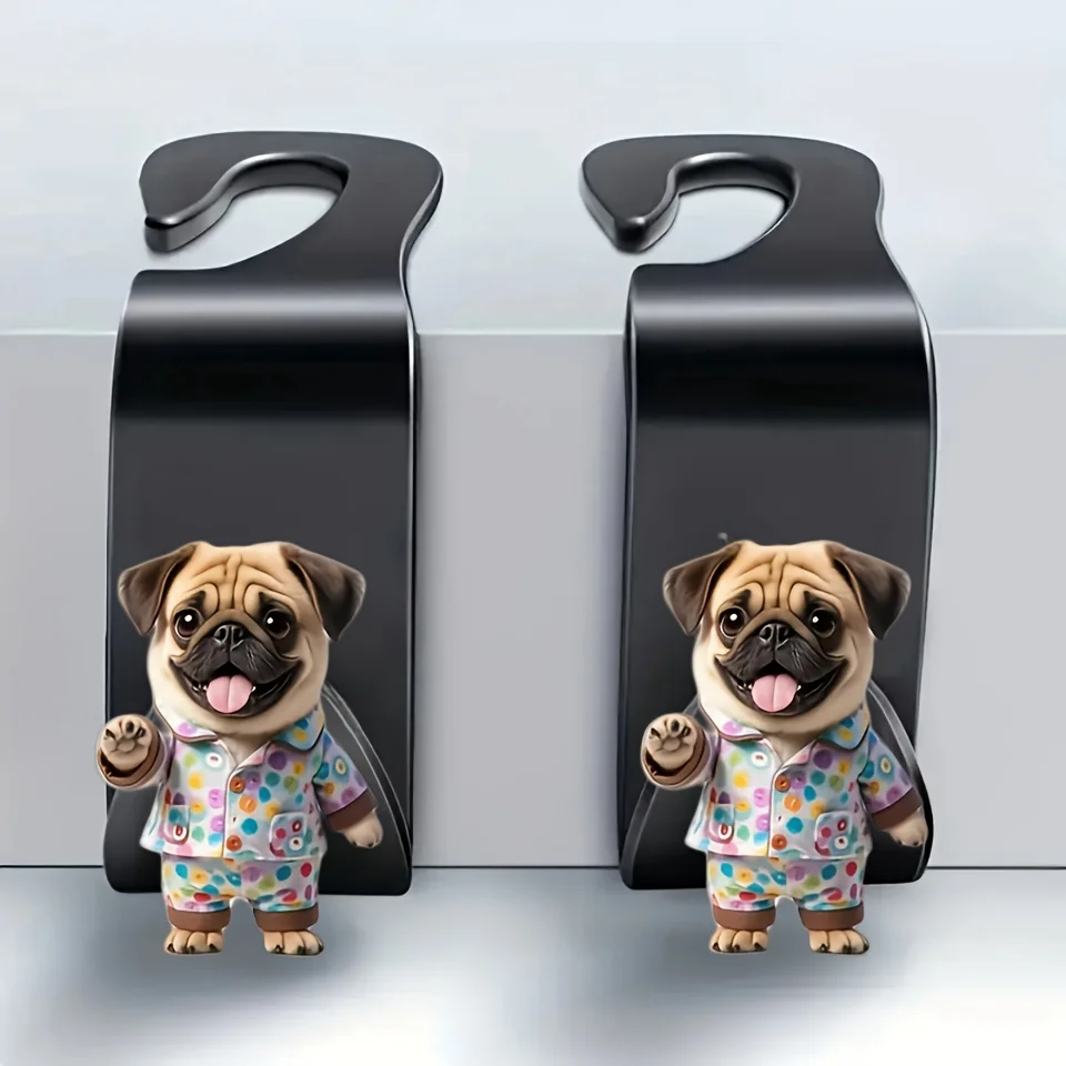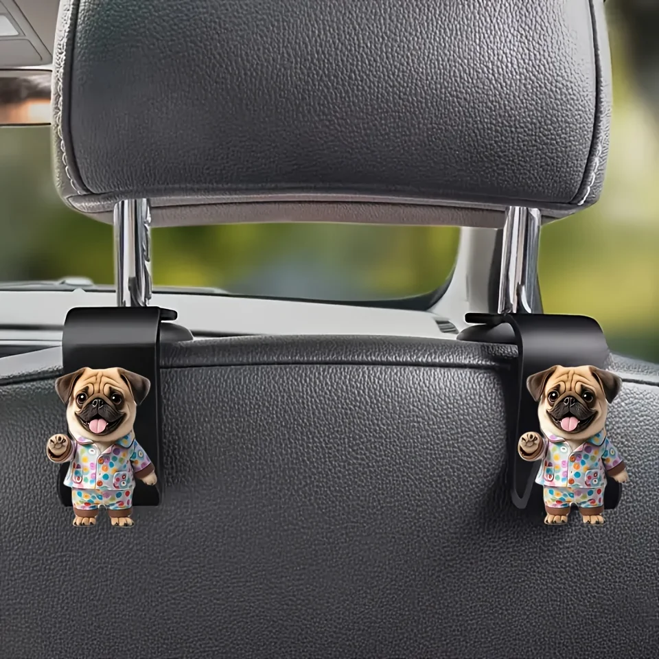 2pcs Adorable Pug Dog Car Back Seat Hook Hanger For Hold Accessory