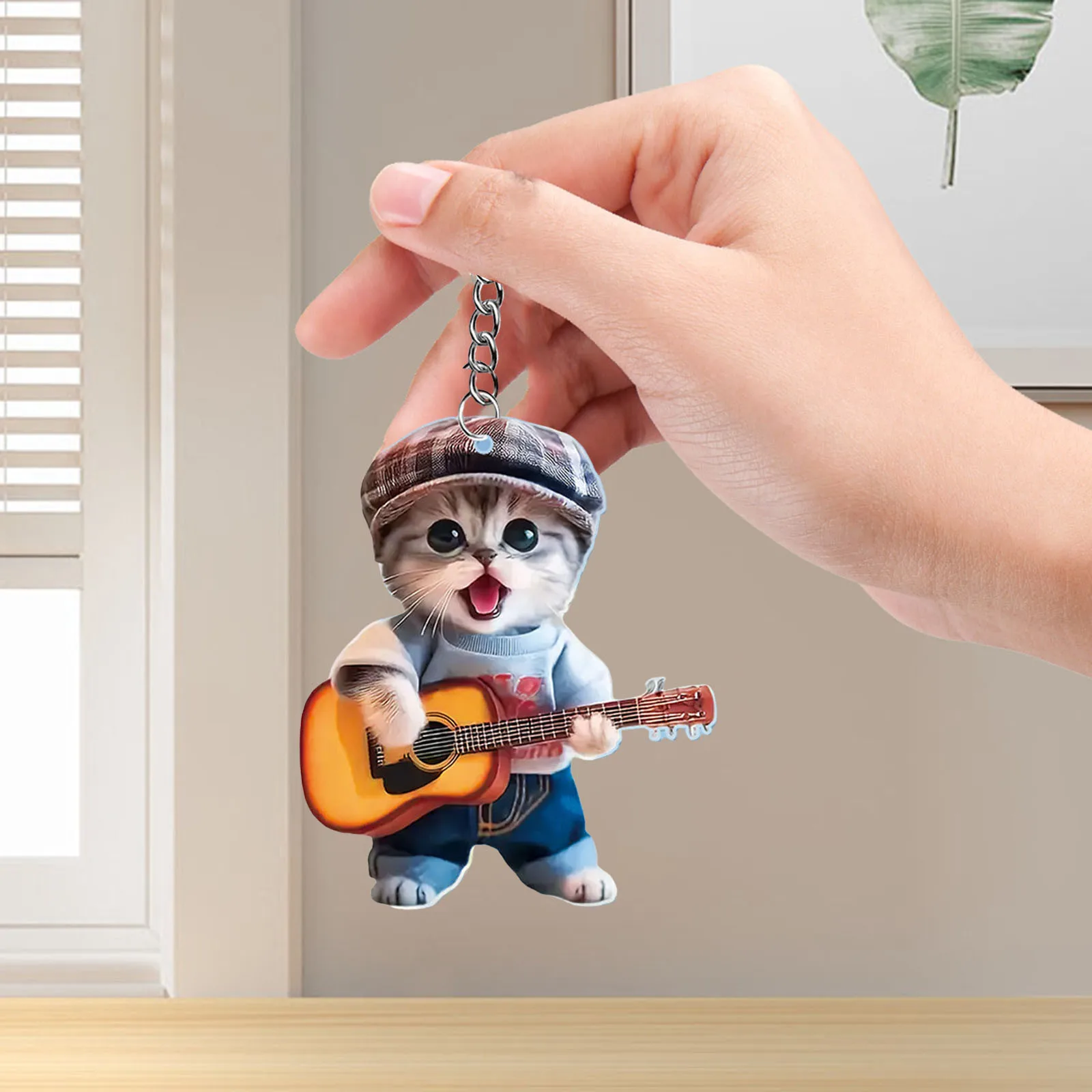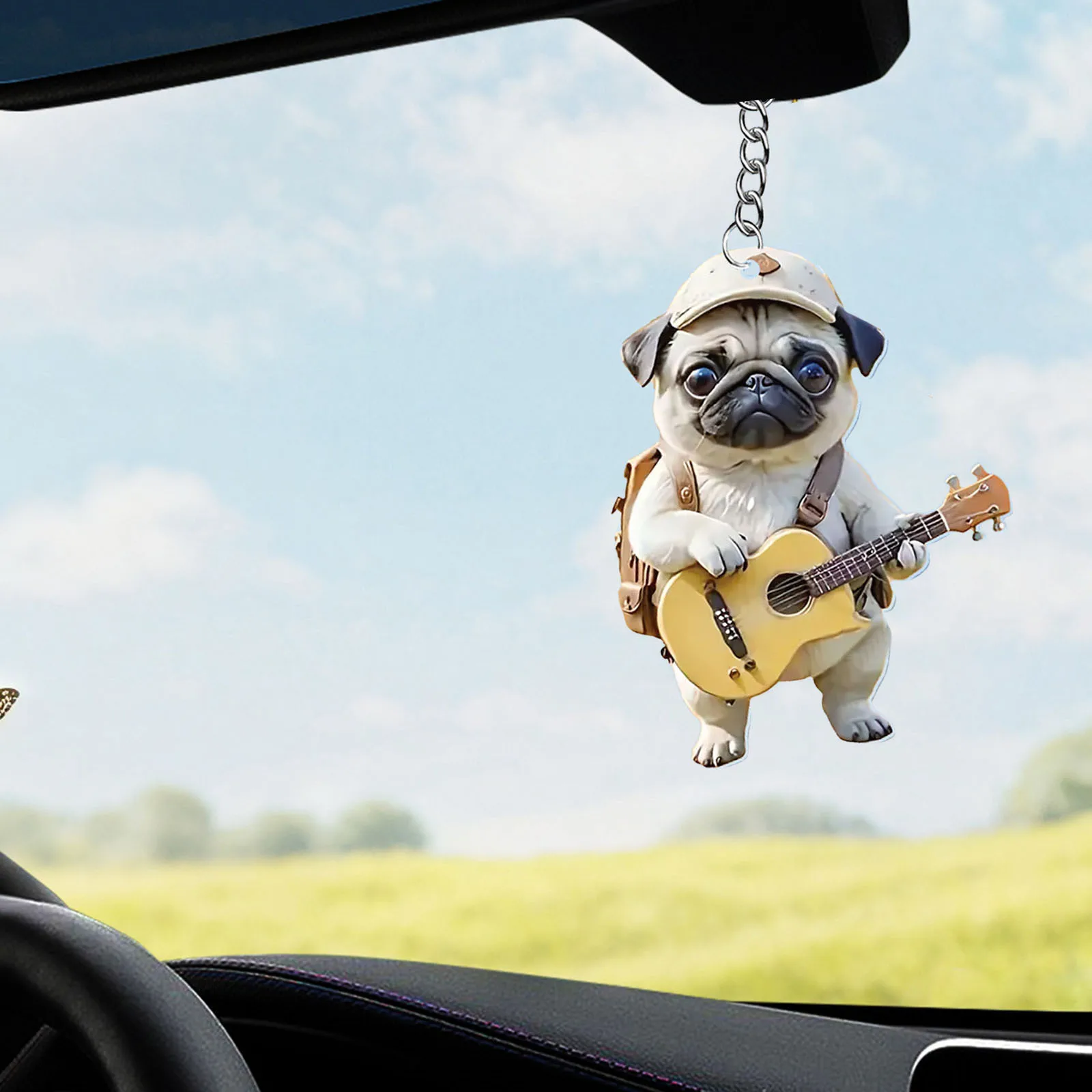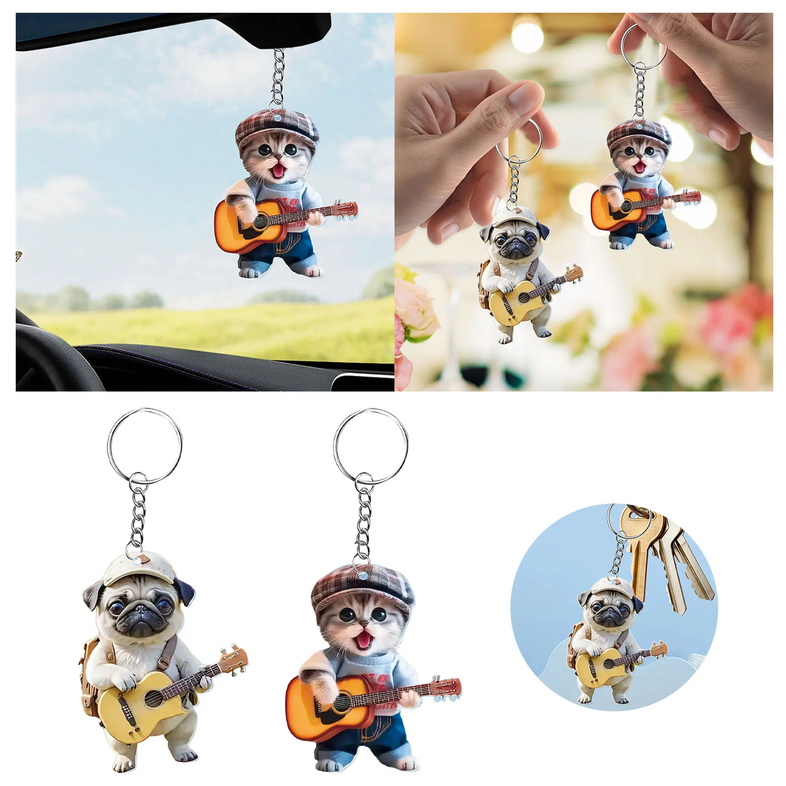 Guitar dog cat cute cartoon 2D flat acrylic hanging decoration car network red small pendant