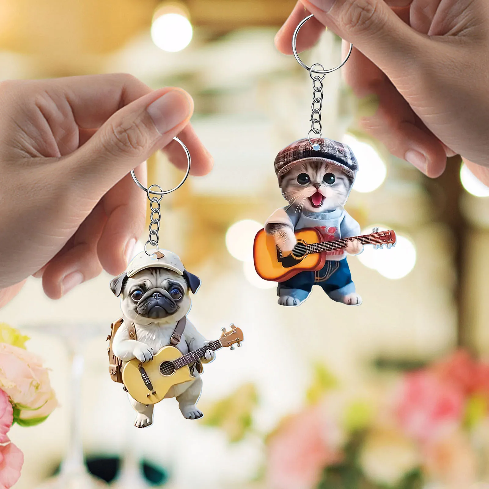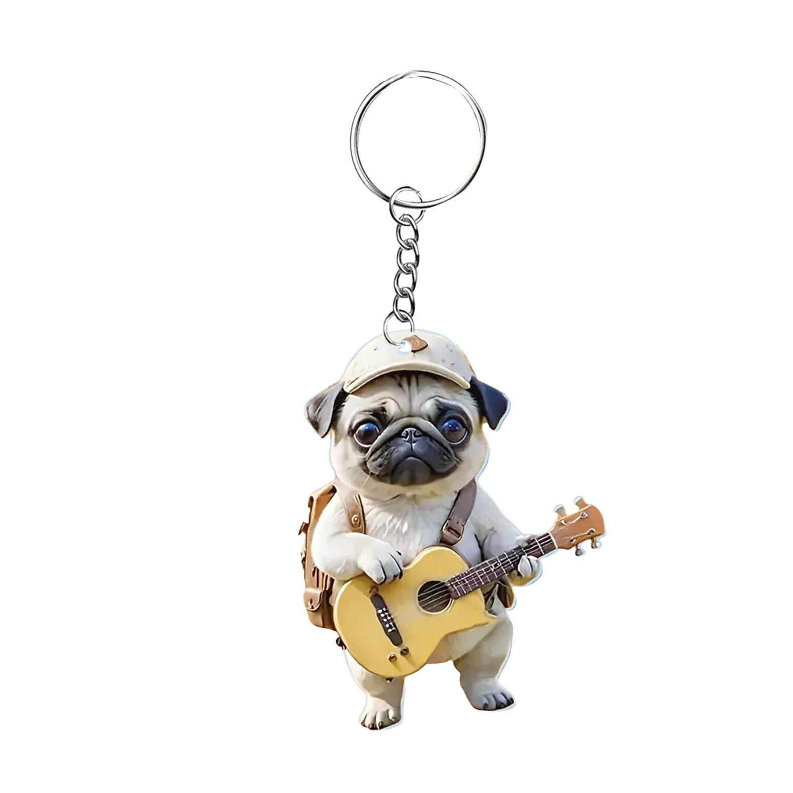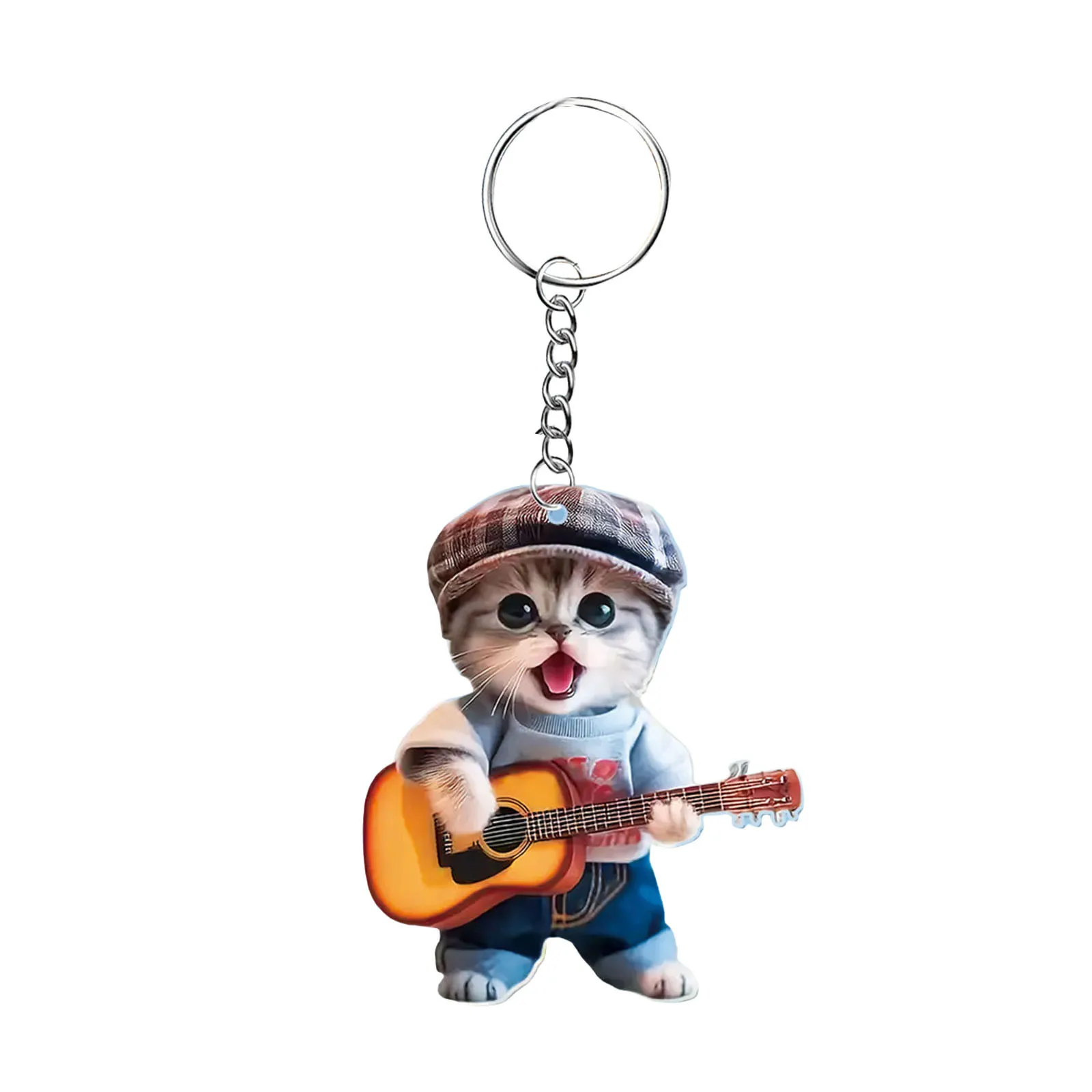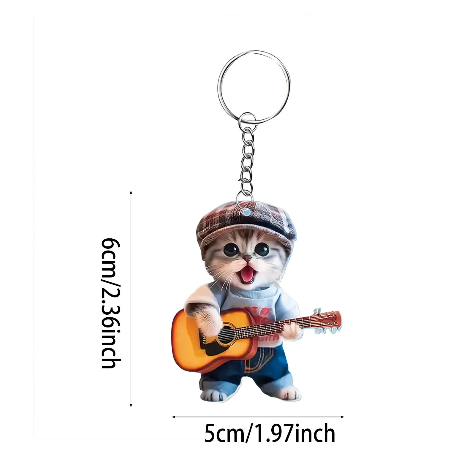 Guitar Dog & Cat Cute Cartoon 2D Flat Acrylic Keychain