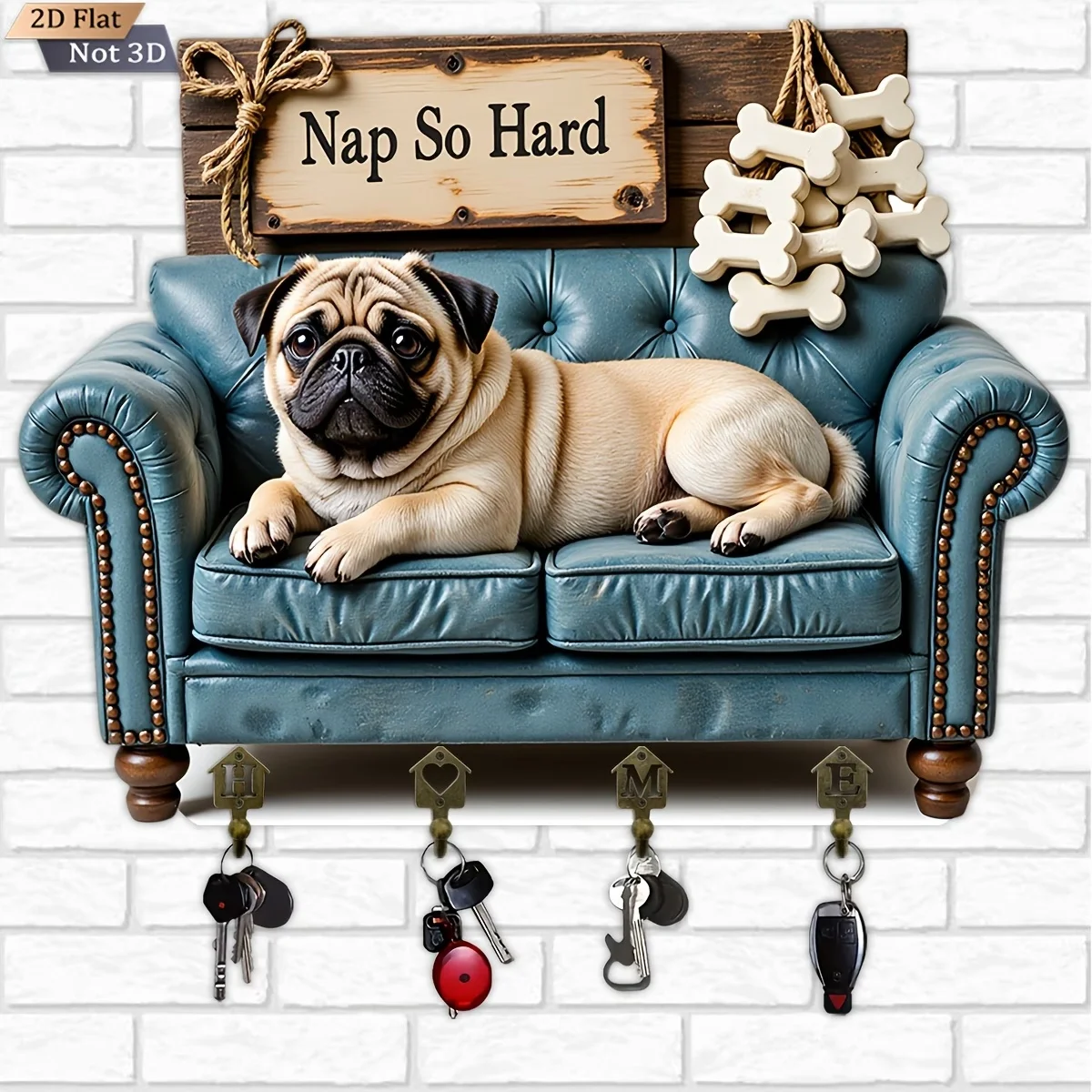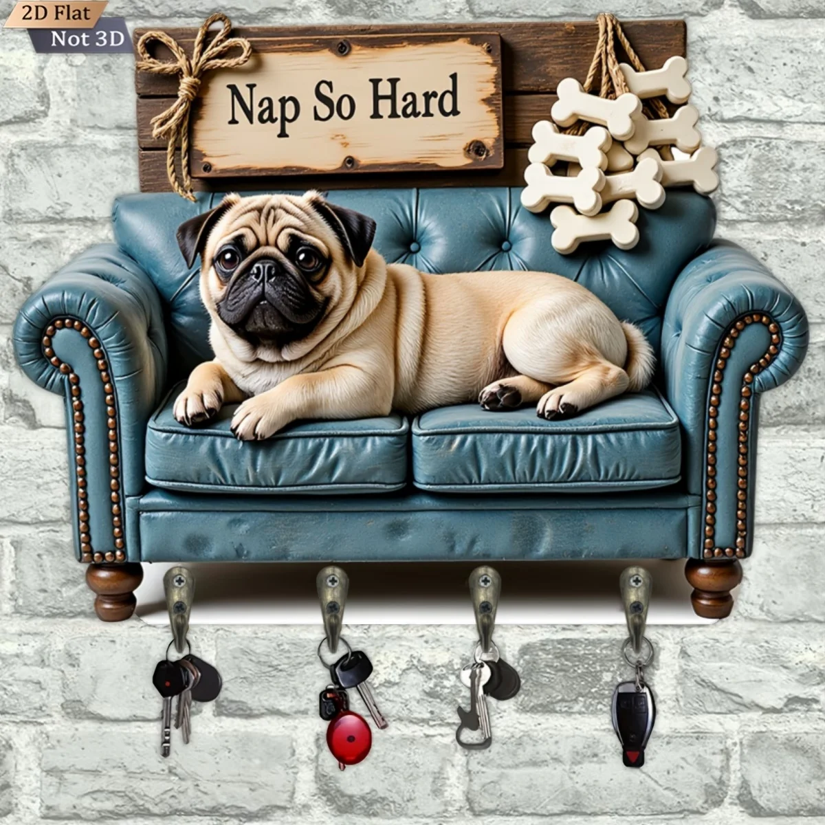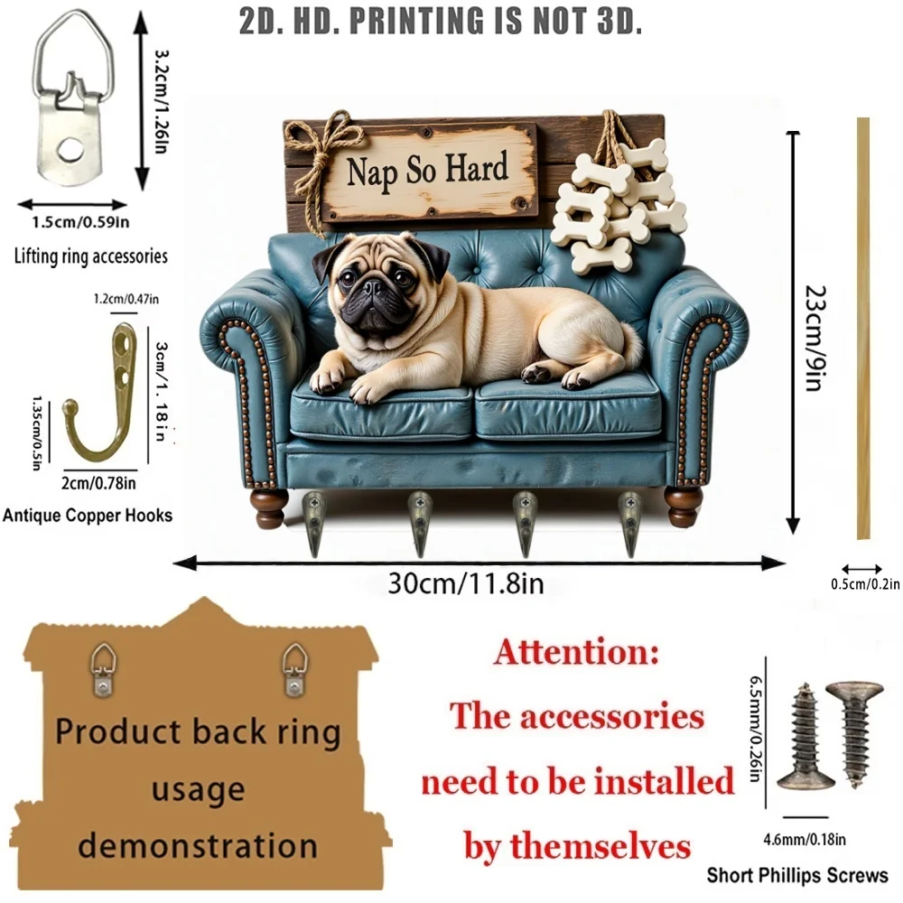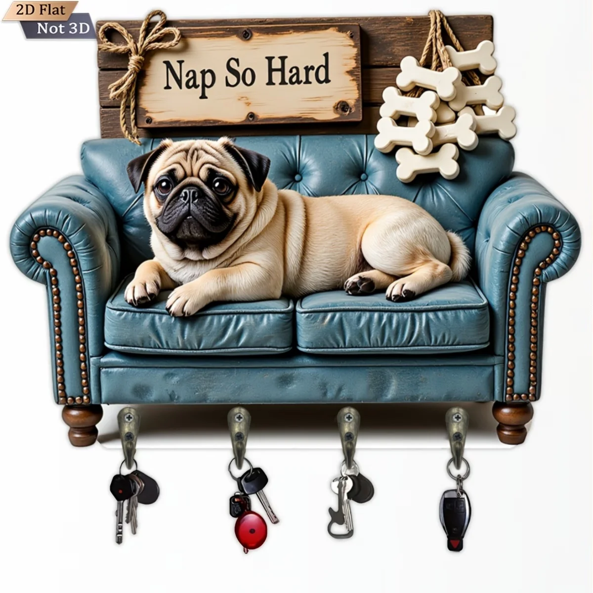 Pug wooden multifunctional home key holder with 4 metal hooks Is Suitable For Decoration
