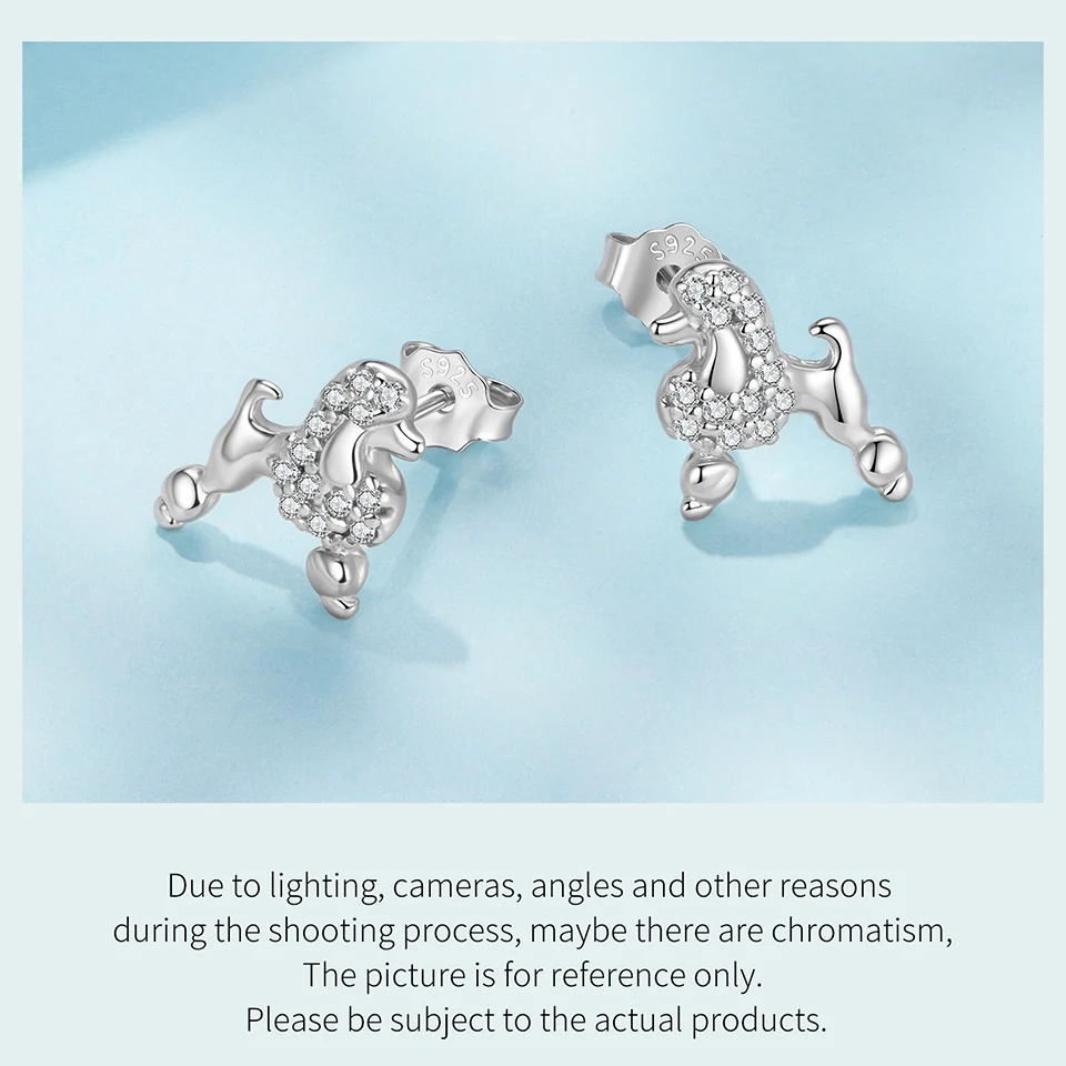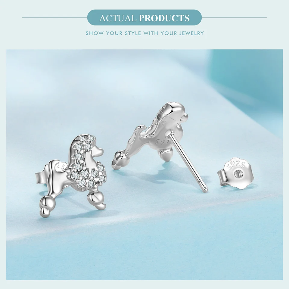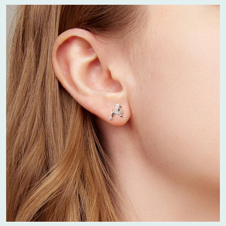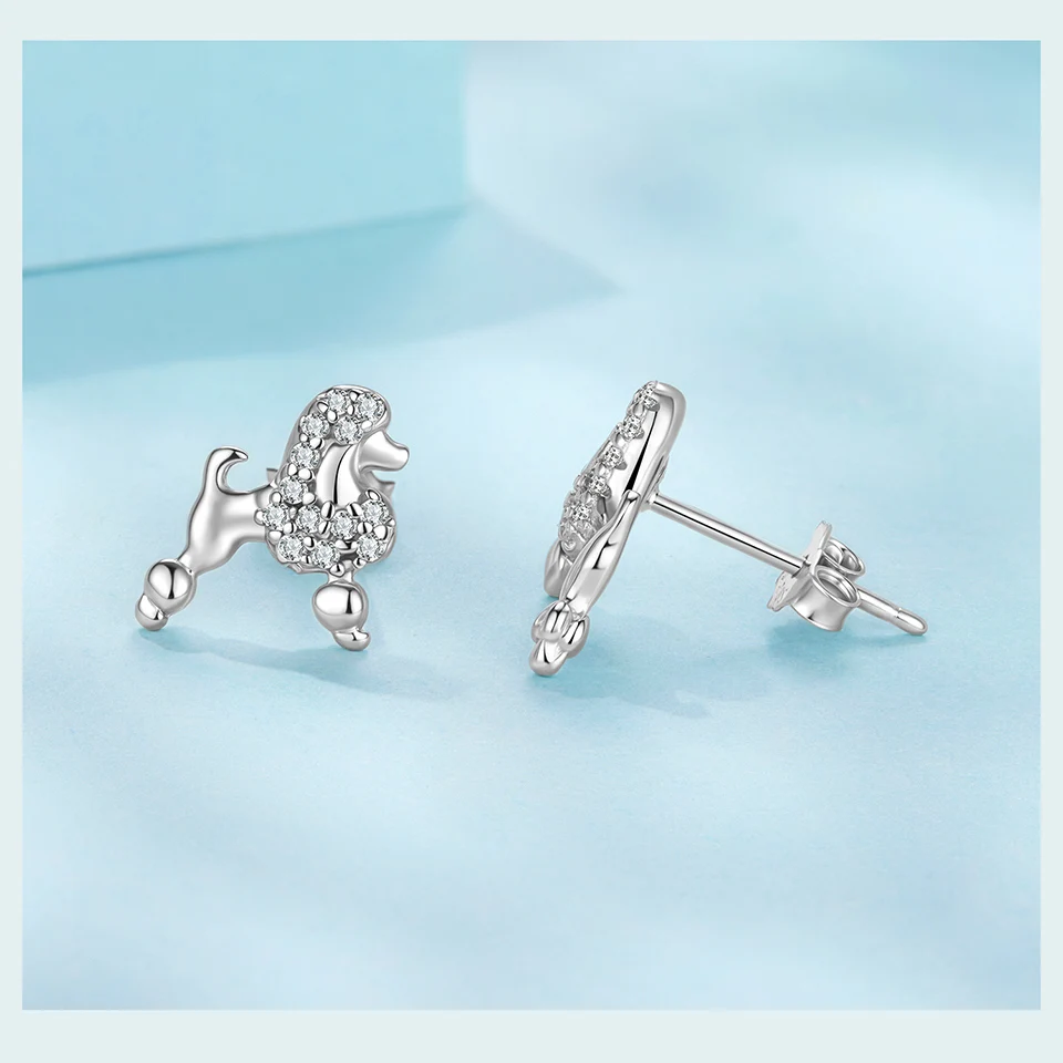 925 Sterling Silver Poodle Stud Earrings