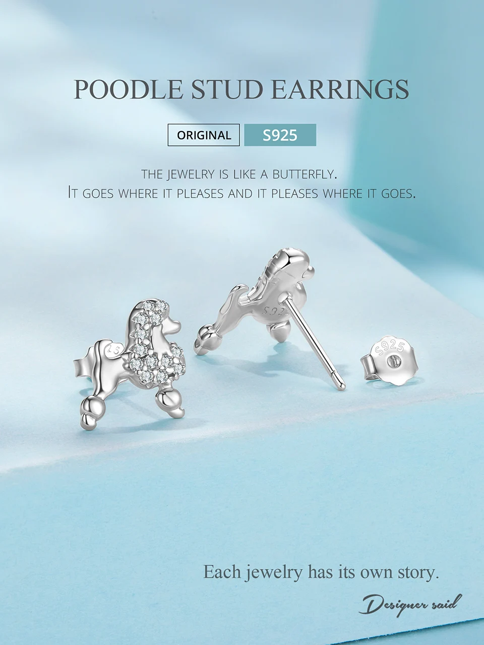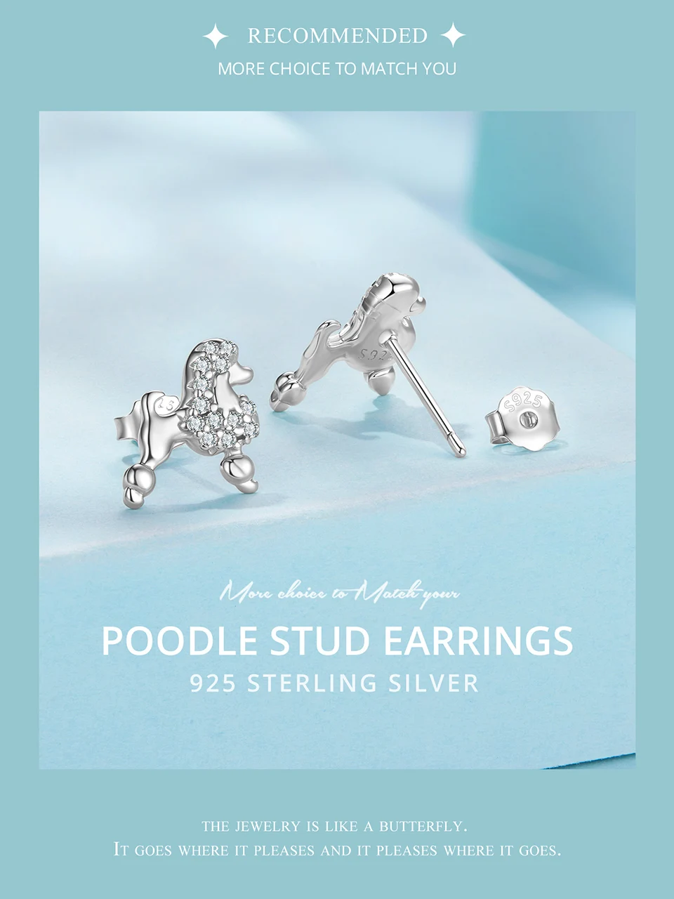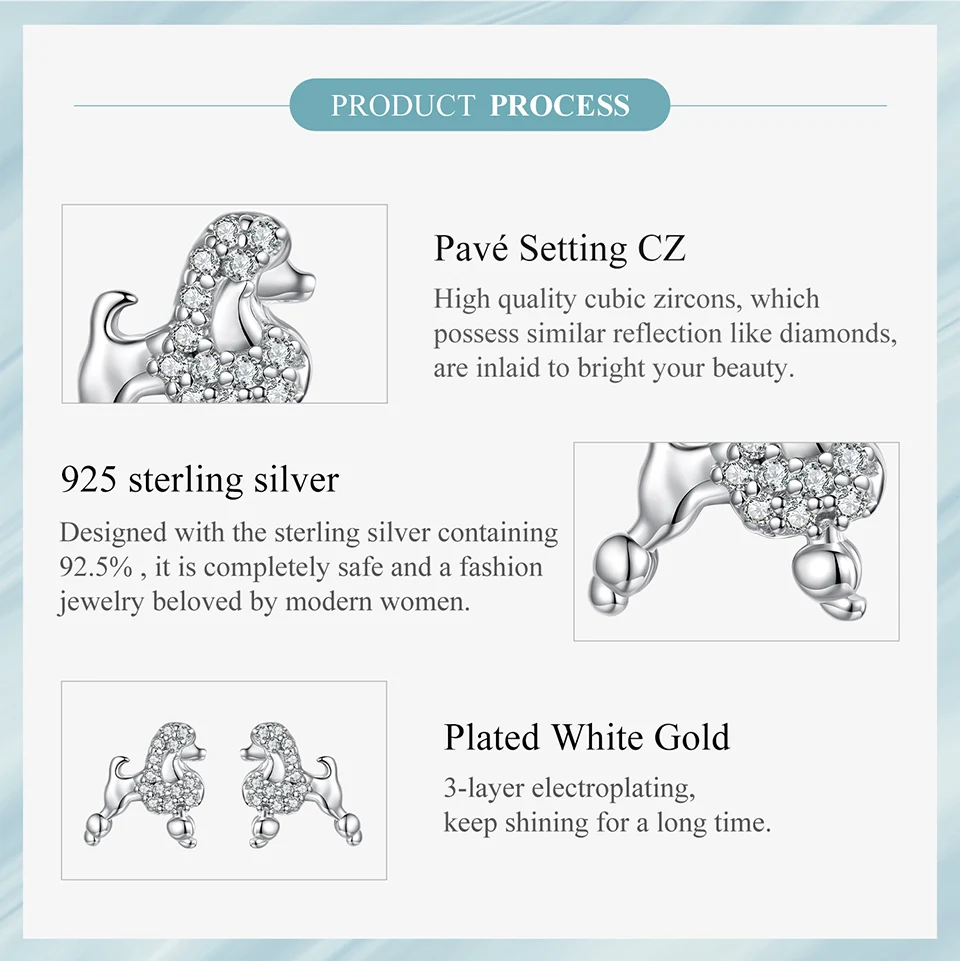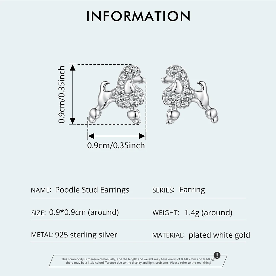 925 Sterling Silver Poodle Stud Earrings