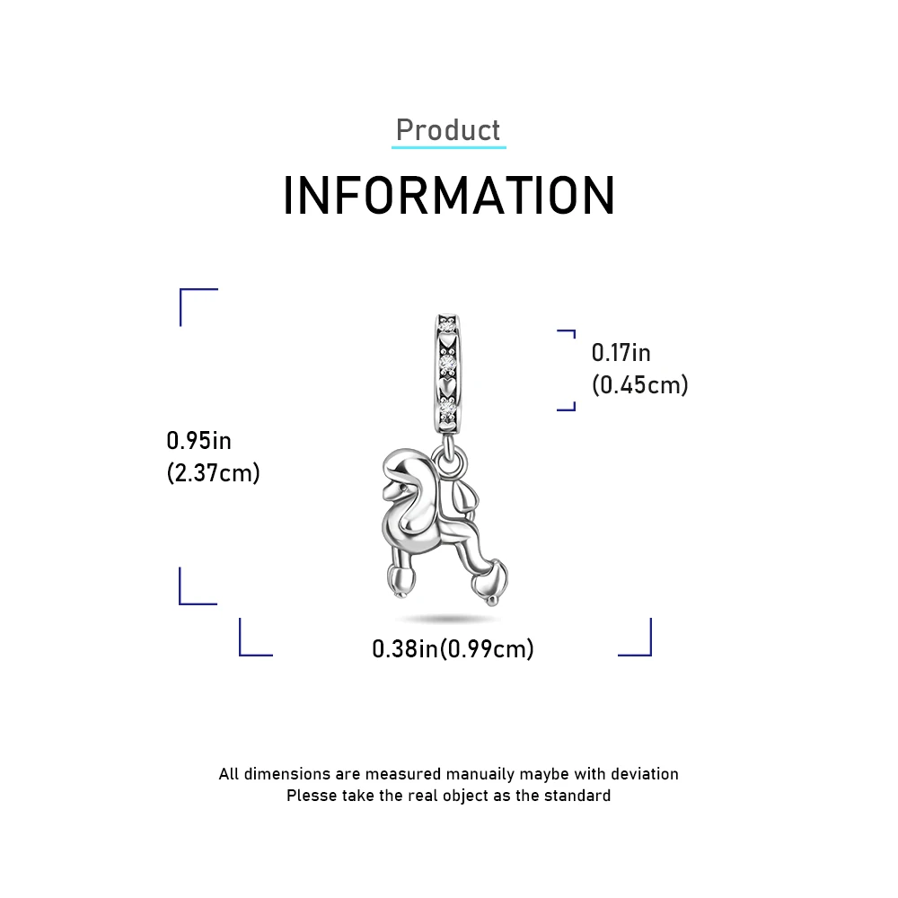 925 Sterling Silver Original Beads Adorable Poodle Pendant
