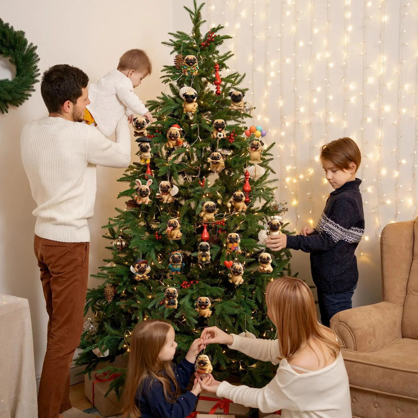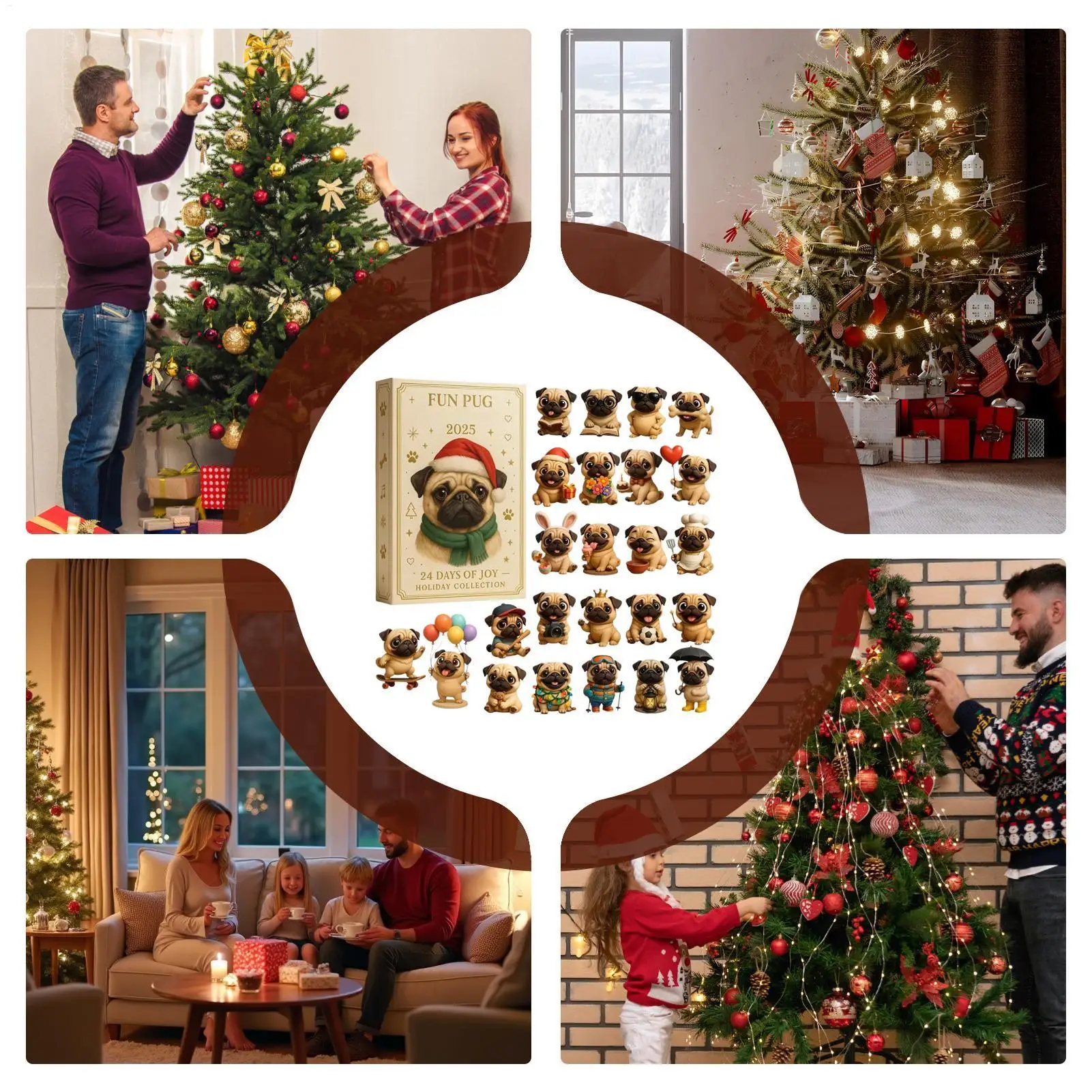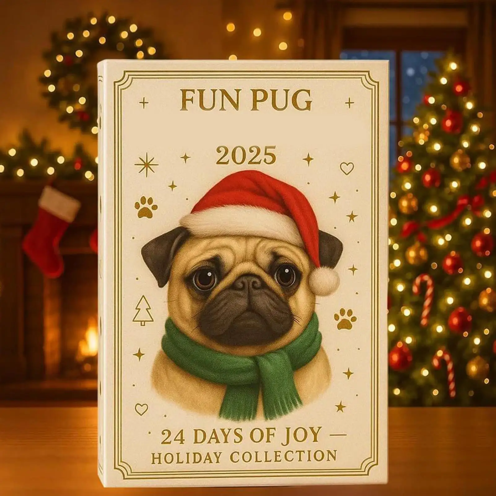 Pug Christmas Advent Calendar 2025, 24 Days Christmas Countdown Calendar Acrylic Cute Pug Ornaments For Tree Decor